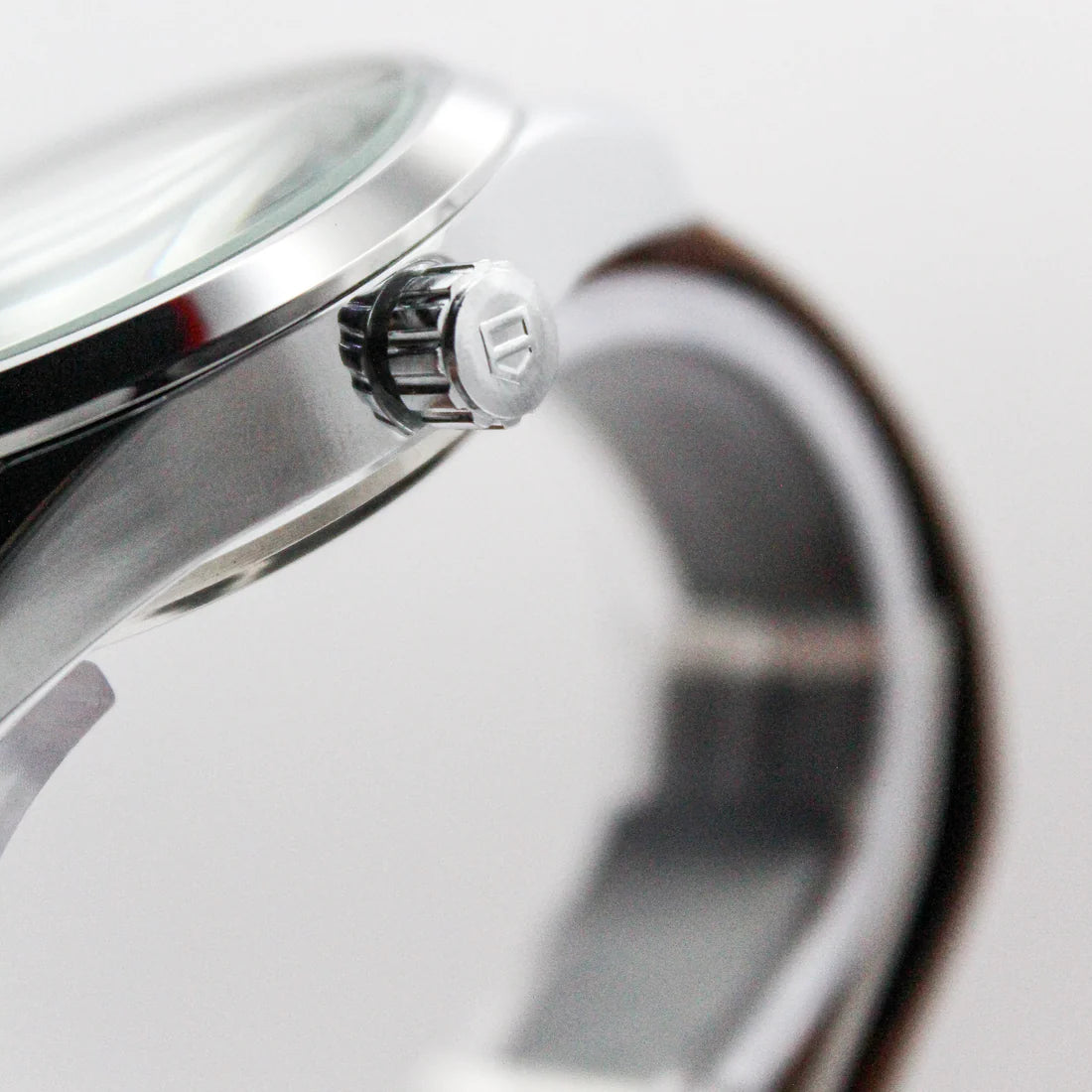 Elevate your wrist game with this iconic TAG Heuer Carrera. Featuring a stunning silver sunray dial with chronograph sub-dials and a handy day/date display. The polished stainless steel case is perfectly complemented by the rich brown leather strap. Swiss-made excellence and racing heritage in one timeless package. A true collector's piece! โจ